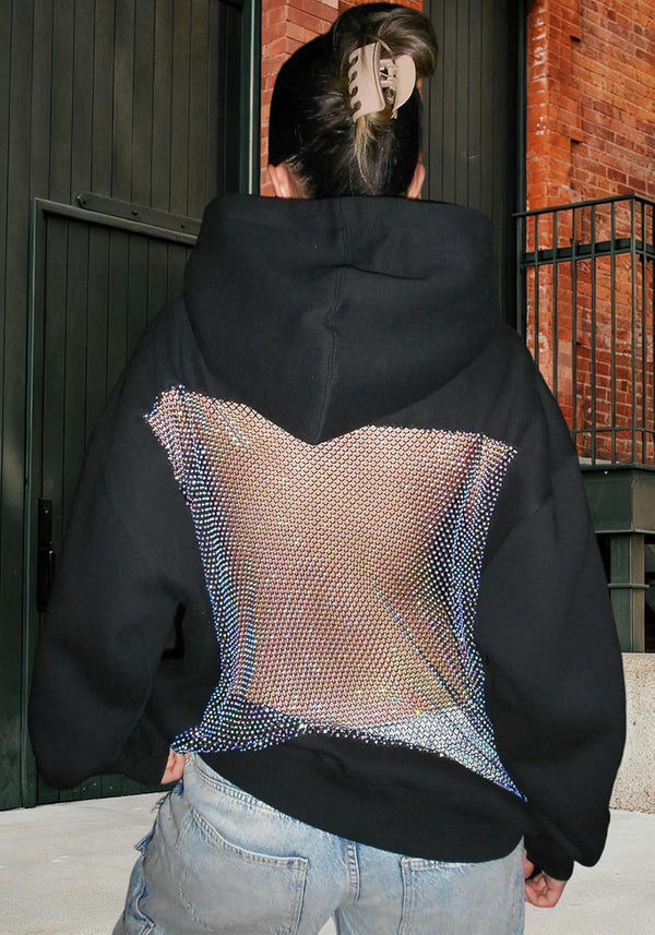 Why NightGlow Sequin Mesh Backless Hoodie?